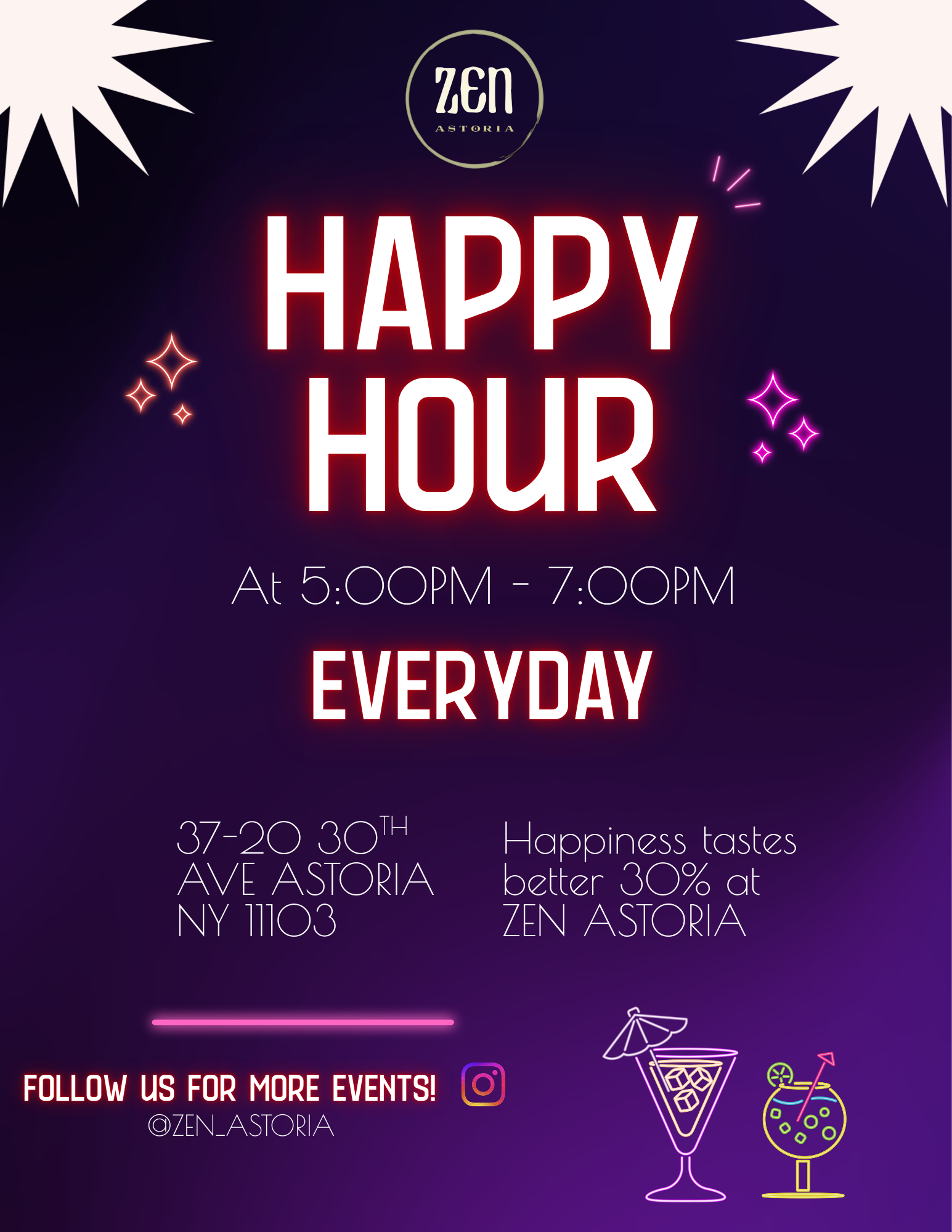 Each cocktail at Zen Astoria is carefully composed with premium spirits, fresh ingredients, and modern mixology techniques.